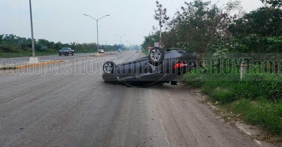 Jóvenes resultan ilesos tras volcadura en el Corredor Urbano Colosio en Madero