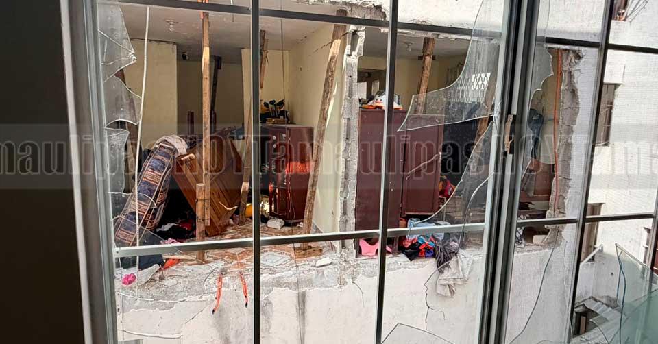 Altamira, Tamaulipas.-La magnitud de la explosión registrada la noche de ayer en el fraccionamiento Olivos 2 dejó al descubierto un escenario de devastación total al interior del departamento afectado.