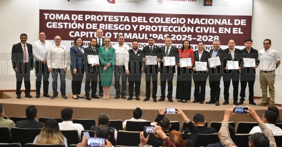 Ciudad Victoria, Tamaulipas.- Tamaulipas dio un paso clave en materia de prevención con la toma de protesta del Capítulo Tamaulipas del Colegio Mexicano de Profesionistas en Gestión Integral de Riesgos y Protección Civil, organismo que contribuirá al fortalecimiento técnico y estratégico de la Gestión Integral de Riesgos en la entidad.