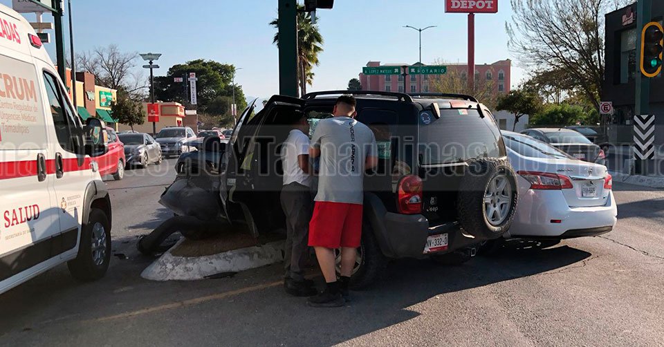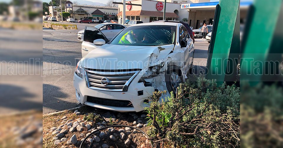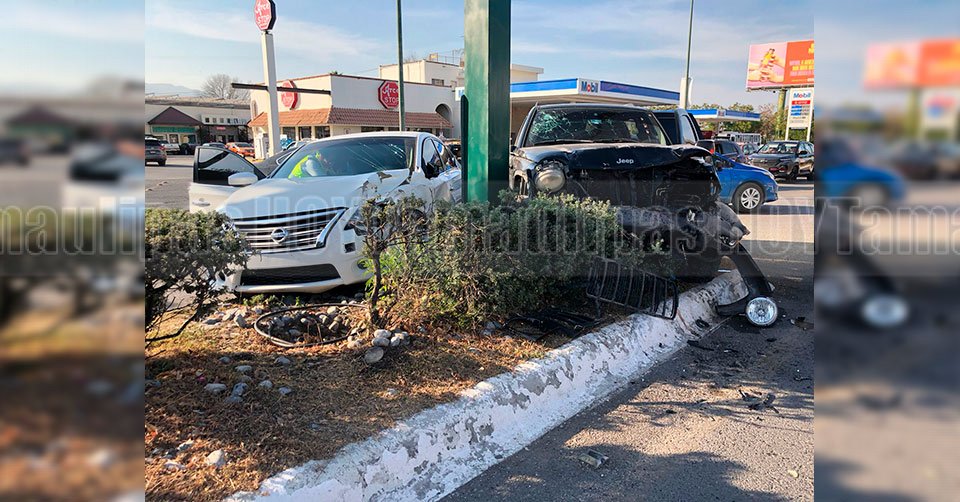 El conductor de un Nissan Sentra salió de la calle Zacatecas para incorporarse al Bulevar Tamaulipas en dirección de sur a norte, cuando fue impactado por una camioneta que circulaba en sentido contrario, de norte a sur. Tras la colisión, ambas unidades se proyectaron contra la base del semáforo.