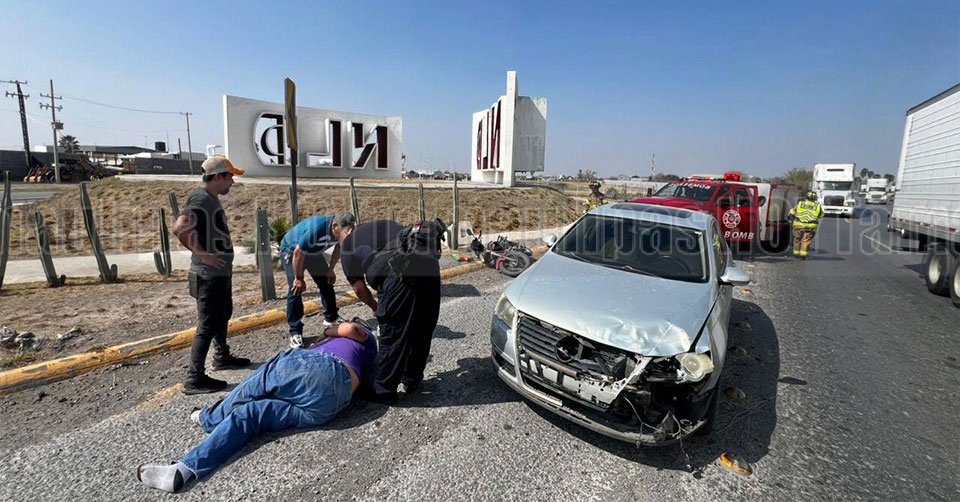 Nuevo Laredo, Tamaulipas. — Un motociclista terminó con heridas de consideración luego de ser embestido por un vehículo particular, mientras circulaba por la Carretera Aeropuerto.