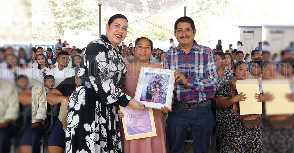 El Mante, Tamaulipas. - Con la certeza jurídica que brinda la ley del Registro Civil, el Gobierno Municipal y el Sistema DIF El Mante consolidaron la unión de 63 parejas que formalizaron su compromiso en matrimonio.