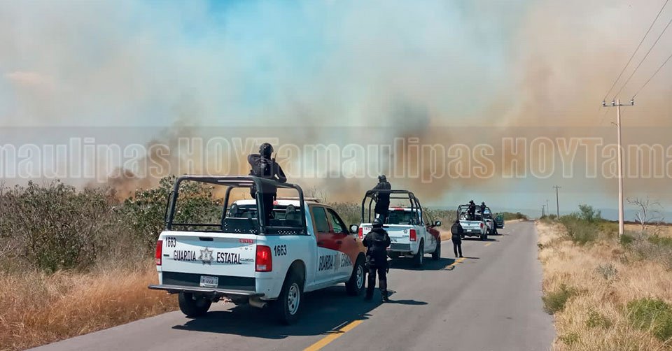 Jiménez, Tamaulipas. – Elementos de la Guardia Estatal activaron el Plan Tamaulipas para atender un incendio de pastizal detectado durante recorridos de seguridad y vigilancia en este municipio.