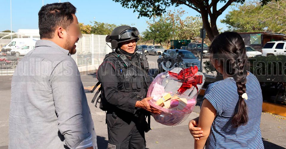 Ciudad Victoria, Tamaulipas. – Elementos del Grupo Motorizado Linces de la Guardia Estatal entregaron un obsequio a los padres de la niña que nació en un automóvil en el Libramiento Naciones Unidas de Ciudad Victoria, luego de que los propios agentes auxiliaron durante la emergencia.