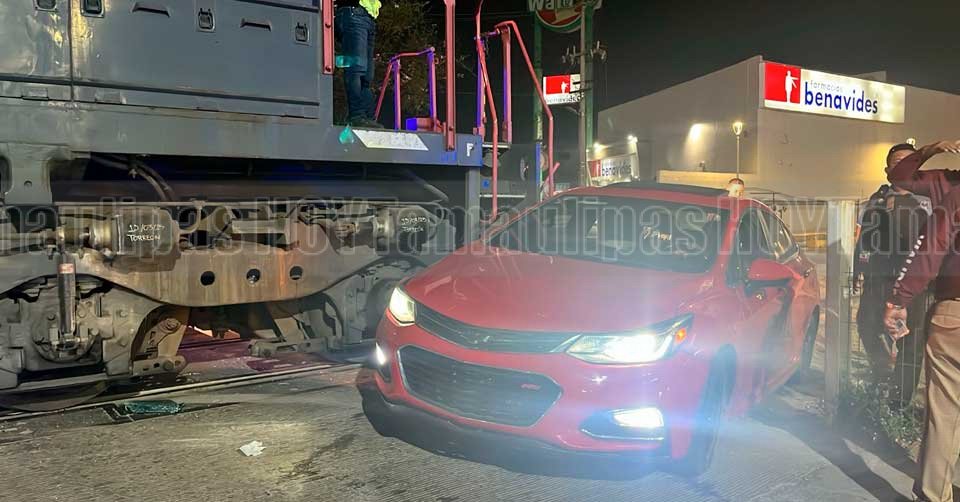 Automovilista intenta ganarle al tren y es impactado por locomotora en Altamira