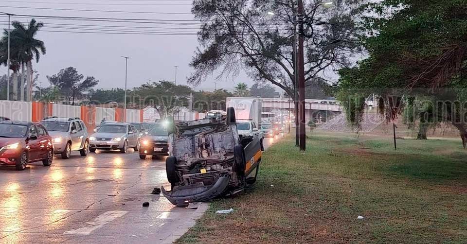 Taxista vuelca unidad en Ciudad Madero y la abandona tras el accidente