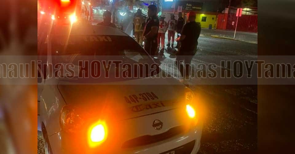 Tampico, Tamaulipas.-Volcada sobre un costado terminó una camioneta, después de colisionar con un taxi esta madrugada, percance en el que una pasajera de la unidad de transporte público resultó con algunas lesiones.