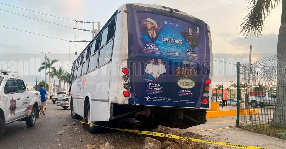 Autobús industrial choca contra poste y golpea automóvil en Altamira