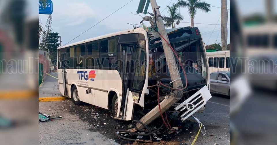 Al presentar la falla el conductor perdió el control y se proyectó de frente contra el poste de la CFE que fue arrancado de su base y arrastrado algunos metros, quedando sostenido únicamente sobre la misma unidad que además alcanzó a impactar a un automóvil Malibú color arena con placas de Tamaulipas en el que una mujer que viajaba como copiloto resultó con algunos golpes.