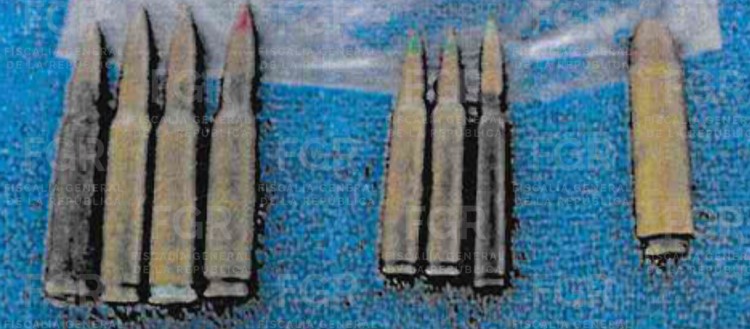 Al momento de la detención, los agentes le aseguraron ocho cartuchos útiles, así como vestimenta con estampado de la Secretaría de la Defensa Nacional (Defensa), un casco, una gorra, dos chalecos tácticos, dos placas balísticas y una mochila.