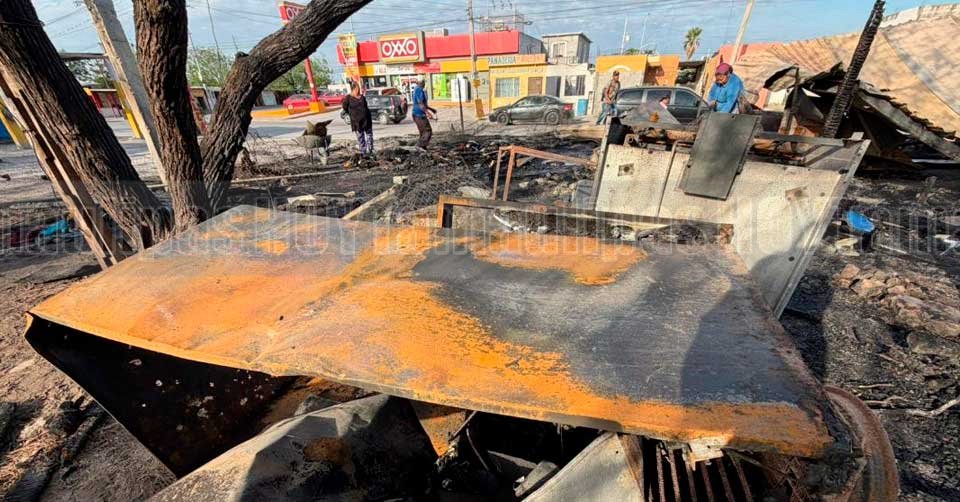 Matamoros, Tamaulipas. - Un fuerte incendio registrado durante la madrugada de este jueves consumió por completo una fondita y un local de venta de peluches ubicados en la avenida Camino Real, esquina con calle Loma de la Plata, en la colonia Loma Alta de Matamoros.
