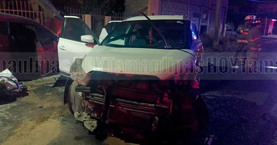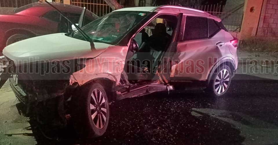 Matamoros, Tamaulipas.- Durante la madrugada de este día se registró un fuerte accidente vial en el cruce de las calles Catorce y Laguna Leona, donde una mujer quedó prensada al interior de su vehículo tras el impacto.
