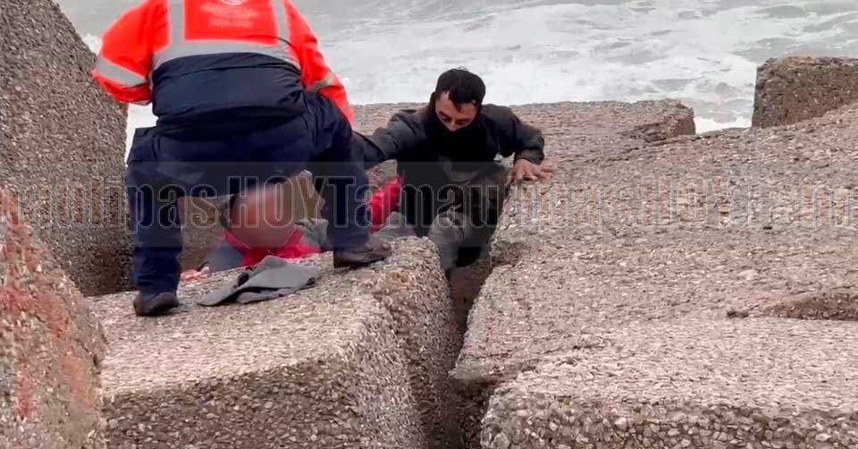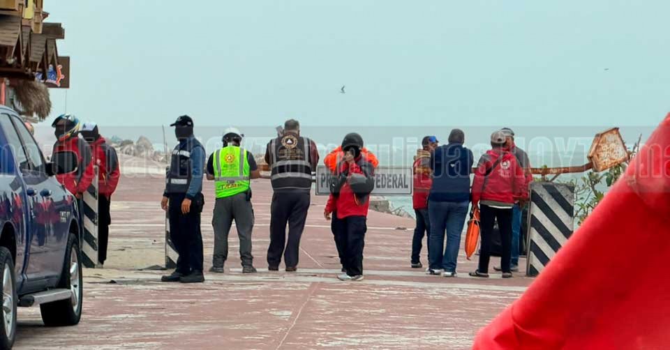 Ciudad Madero, Tamaulipas.-Autoridades de Protección Civil de Ciudad Madero activaron un protocolo de seguridad tras recibir el reporte de una persona atrapada en la zona de las escolleras de Playa Miramar, en medio del fuerte evento de norte que afecta la zona costera.