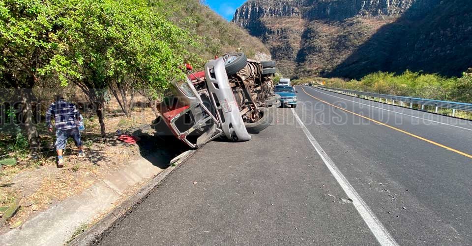 De acuerdo con los primeros reportes, una presunta dormitada al volante provocó que el operador perdiera el control, saliera de la carretera, tomara la cuneta y terminara volcado.