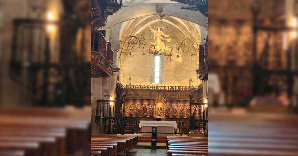 Ahí aparece un detalle que rompe la lógica: la Virgen que parece suspendida en el aire. No es un truco evidente. Es una sensación. La observas… y por un instante dudas de la gravedad. Como si en ese espacio las reglas fueran otras. Como si la fe, la historia y el tiempo hubieran decidido flotar juntos.