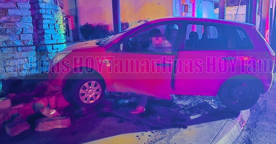 Ebrio al volante se estrella contra barda de piedra de hotel en Nuevo Laredo