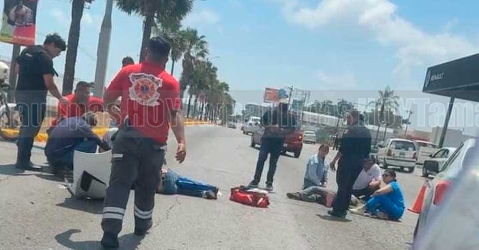 Pareja que viajaba en moto resultó herida de gravedad al impactarse con auto en Tampico