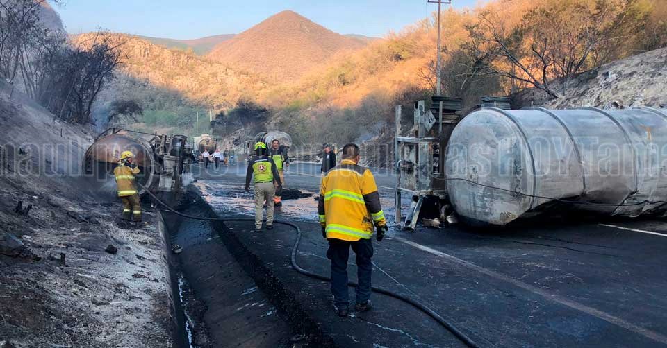 De manera preliminar, se informó que la pipa colisionó contra otro tráiler, lo que desencadenó la volcadura y posterior incendio. La magnitud del siniestro obligó a cerrar completamente la circulación en ambos sentidos.