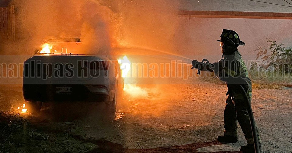 Nuevo Laredo, Tamaulipas. — Un vehículo de modelo reciente terminó convertido en chatarra, tras registrarse un voraz incendio que movilizó a los cuerpos de emergencia y causó pánico entre los vecinos de la colonia Américas IV, al surponiente de Nuevo Laredo.