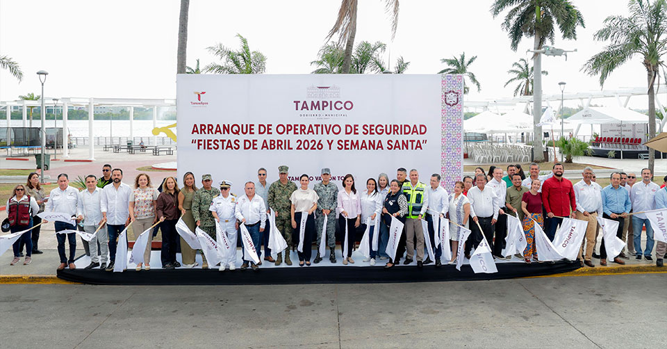 Tampico, Tamaulipas. - La Presidenta Municipal de Tampico, Mónica Villarreal Anaya, dio el banderazo de inicio al operativo “Semana Santa Segura Tampico Te Cuida 2026”, en el Parque Urbano de la Laguna del Carpintero, con el objetivo de brindar protección, atención a los visitantes durante el próximo periodo vacacional.