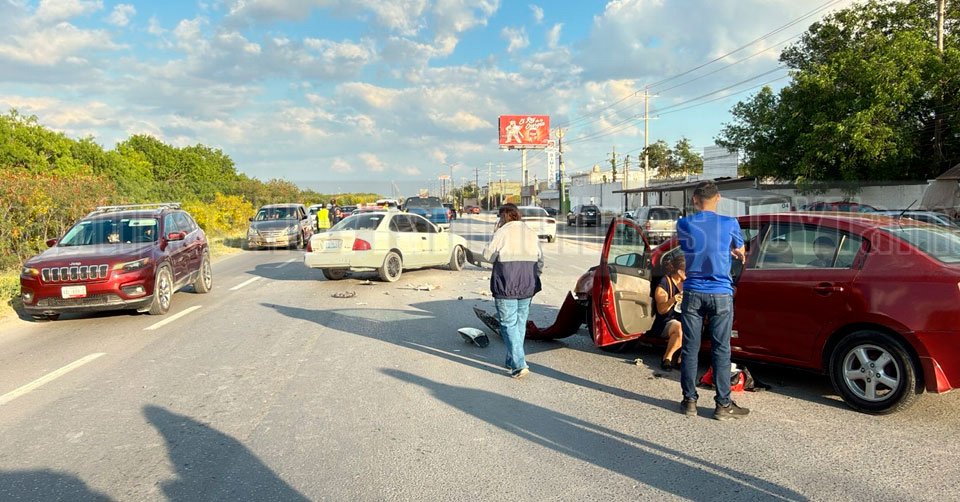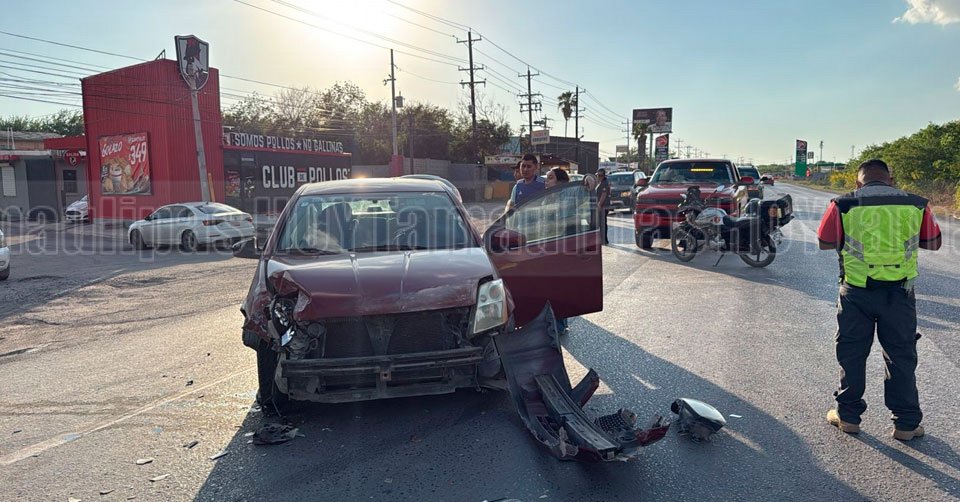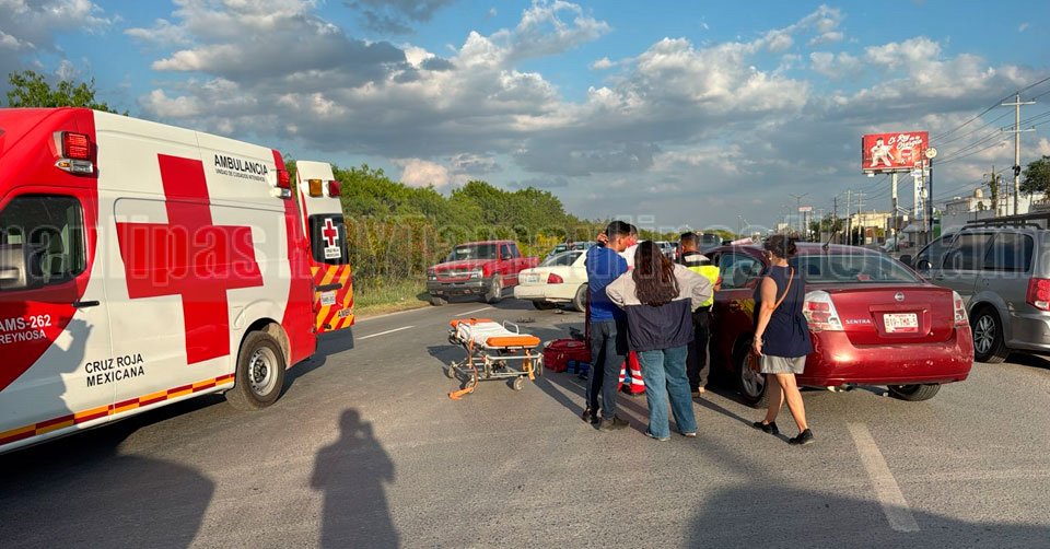 Reynosa, Tamaulipas. — Una mujer resultó lesionada tras un aparatoso accidente vehicular registrado la tarde de este día sobre la carretera Ribereña, a la altura de la colonia Rancho Grande.