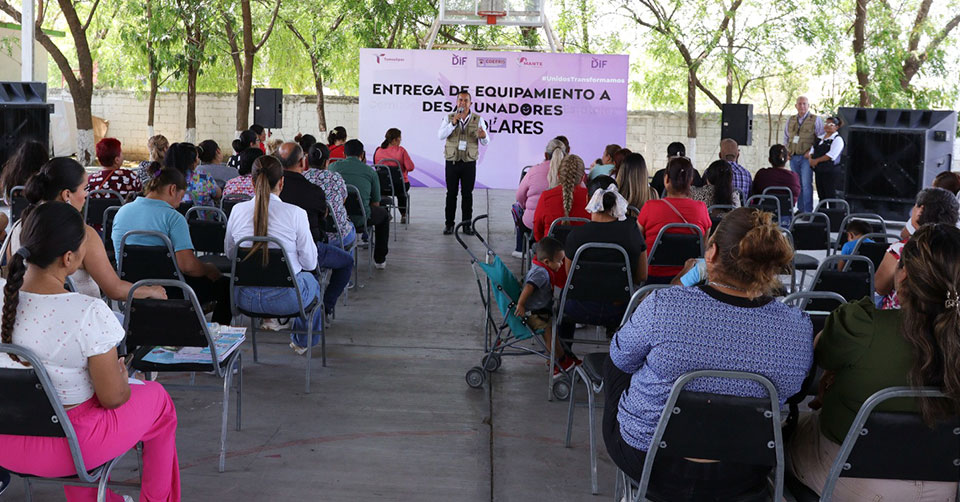 Durante la entrega de equipamiento a 31 desayunadores escolares enviados por la Dra. María de Villarreal, presidenta del Sistema DIF Tamaulipas, el Gobierno Municipal a cargo de Patty Chío fortaleció las acciones con la capacitación a madres de familia encargadas de la preparación de alimentos.