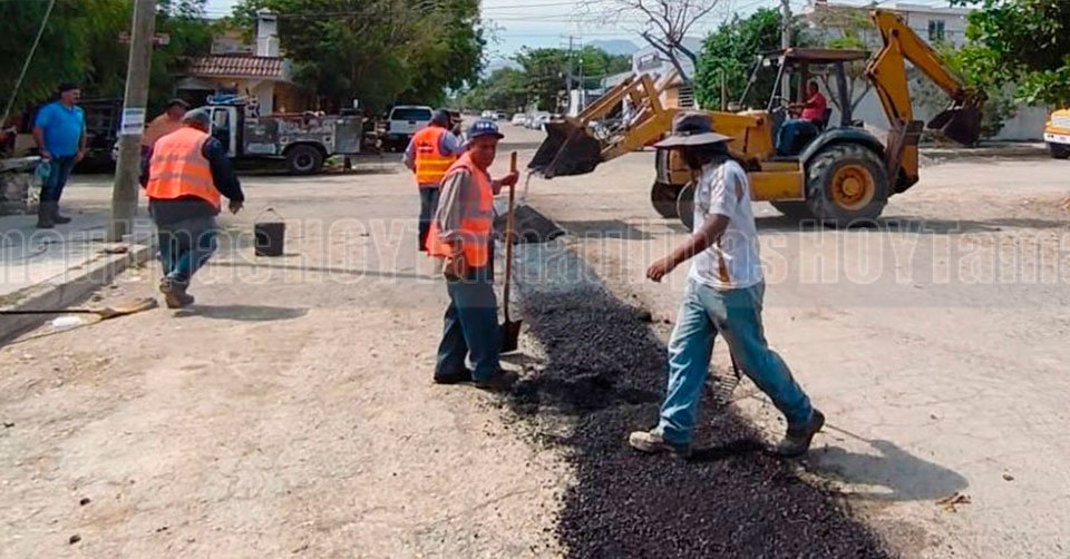 Ciudad Victoria, Tamaulipas. - En periodo vacacional, colonias, ejidos y fraccionamientos de la Capital, reciben mejoría de vialidades con trabajos de bacheo, rastreo y nivelación en 40, 380 metros cuadrados de calles.