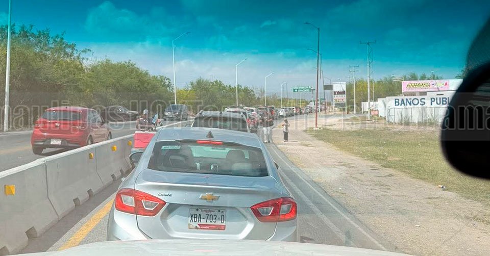 Reynosa, Tamaulipas. - Con el arranque del periodo vacacional de Semana Santa, los cruces internacionales en la frontera de Tamaulipas registraron nuevamente largas filas de automovilistas que buscan ingresar a Texas, principalmente con destino a playas y centros turísticos.
