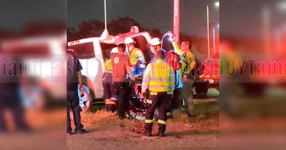 Según el reporte la unidad color blanco tipo pick-up se salió del camino y se impactó contra el poste, resultando lesionada la mujer que fue trasladada al Hospital del Seguro Social por paramédicos de la Central de Emergencias que resguardan la zona industrial de Altamira.