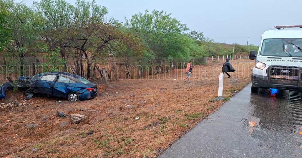 Los heridos viajaban en un automóvil Nissan Versa color azul, el cual salió de la carretera y terminó volcado.