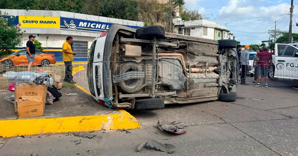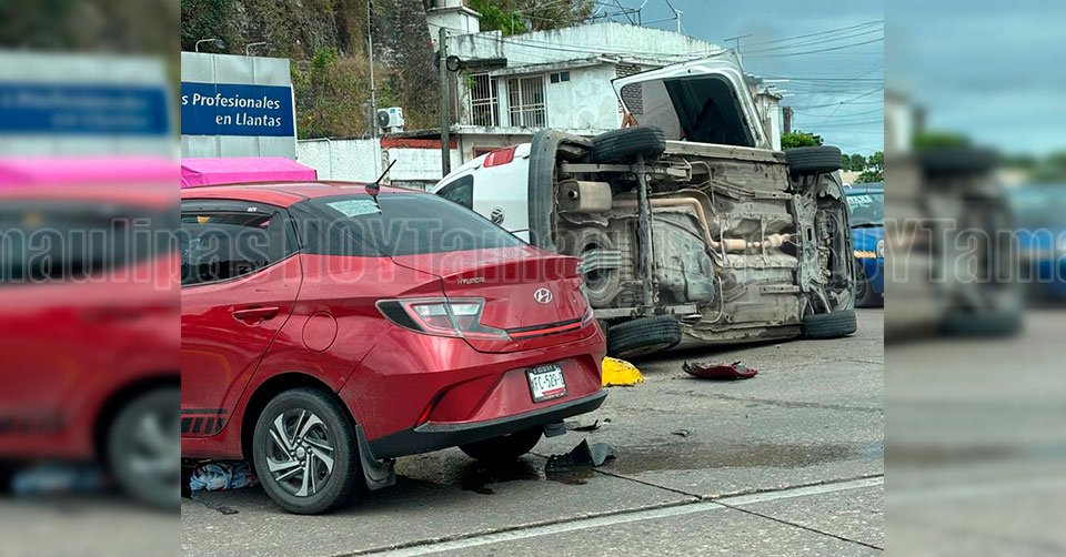 Mujer y su bebé lesionados en choque con volcadura de camioneta en Tampico