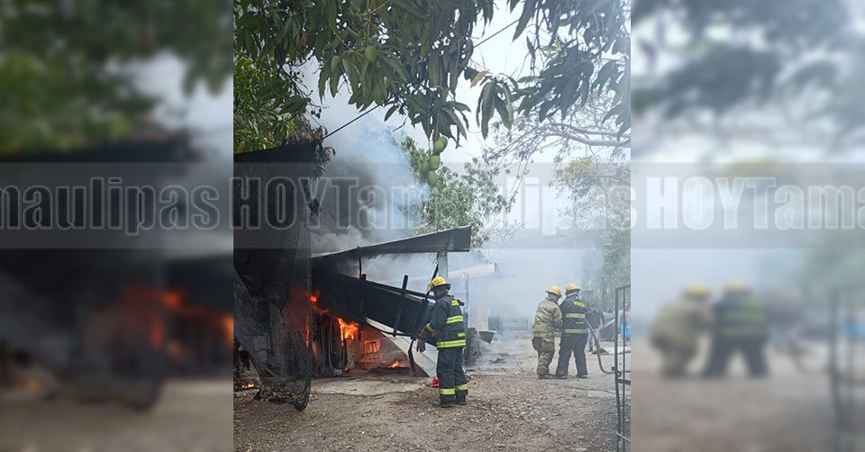 Altamira, Tamaulipas. - Un tallercito eléctrico automotriz construido con madera y lámina fue reducido a cenizas por un incendio que se registró esta tarde en la zona centro de Altamira.
