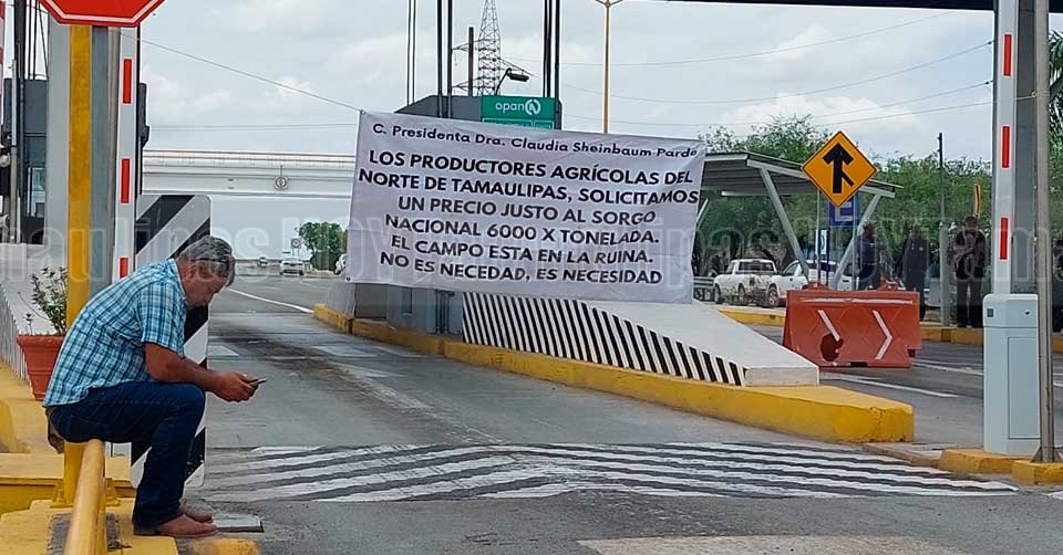 Agricultores del norte de Tamaulipas permitieron el paso libre en la caseta de CAPUFE en Nuevo Progreso y demandaron al Gobierno federal fijar el sorgo en 6 mil pesos por tonelada