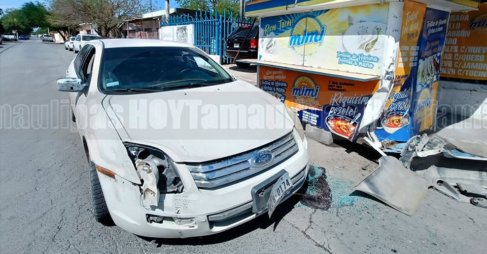 Nuevo Laredo, Tamaulipas. — El crucero de Riva Palacio y Venustiano Carranza, en la colonia Juárez de Nuevo Laredo, fue escenario de un accidente vial, en el que la falta de precaución de un joven conductor derivó en daños tanto en vehículos como en puesto semifijo de tacos.