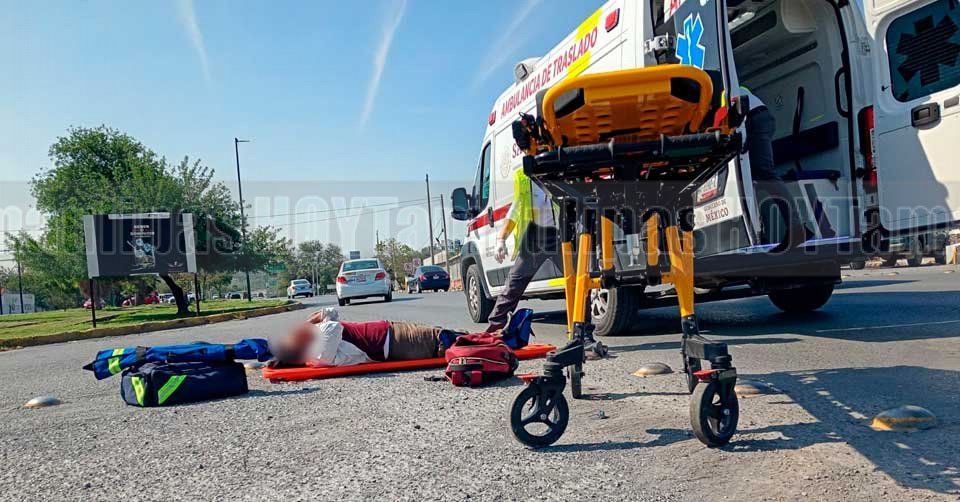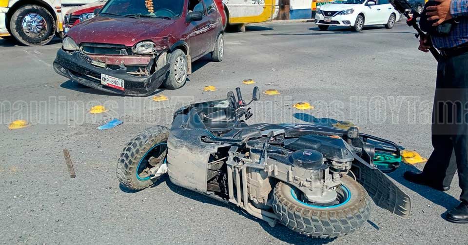 Ciudad Victoria, Tamaulipas.- Una mujer después de chocar su motocicleta con un vehículo, resultó con varias lesiones y una posible fractura, por lo que requirió ser trasladada a un hospital.