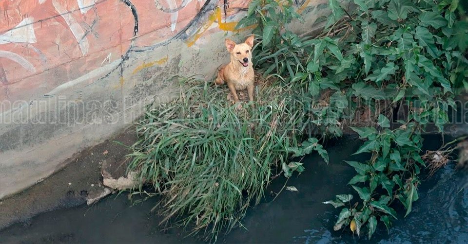 Rescatan a perro atrapado en canal de Ciudad Victoria; ciudadano decide adoptarlo