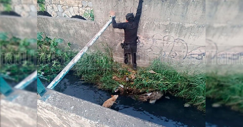 Ciudad Victoria, Tamaulipas. – Elementos de la Guardia Estatal realizaron el rescate de un canino que se encontraba atrapado en un canal de aguas residuales, tras atender la solicitud de auxilio de un ciudadano en el Eje Vial de Ciudad Victoria.