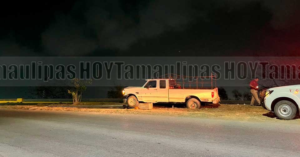 De acuerdo al reporte proporcionado por personal de tránsito, la camioneta Ford F-250 color blanco modelo 1995 y con placas de Tamaulipas, se desplazaba de poniente a oriente y al perder el control el conductor trepó al camellóndonde se impactó con la luminaria que fue derribada.