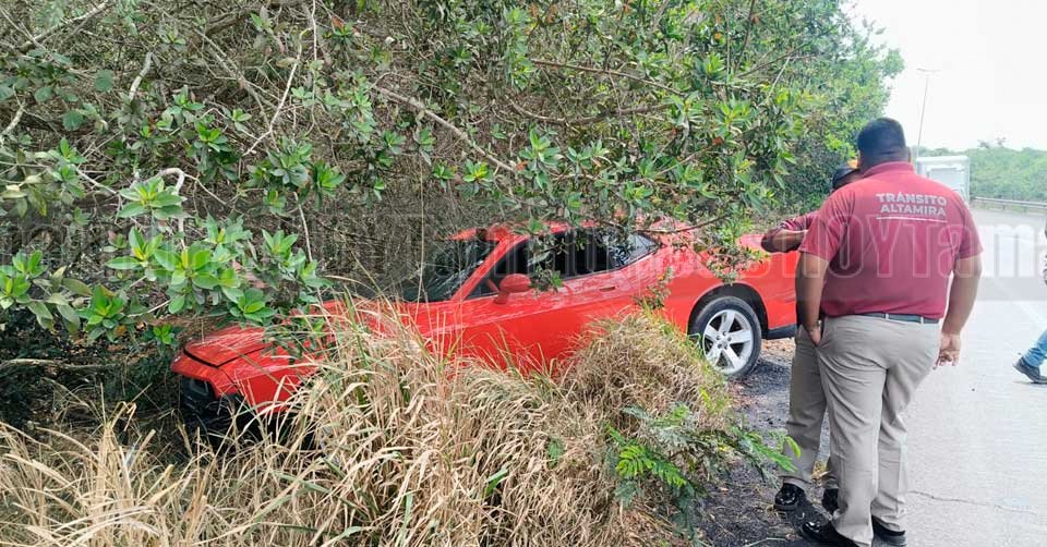 Choque múltiple deja auto deportivo entre matorrales en Altamira