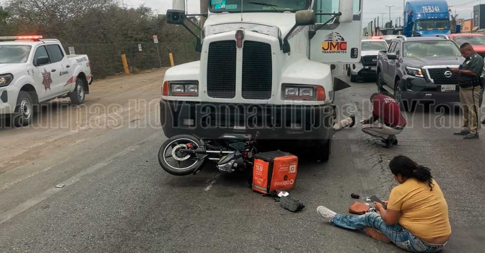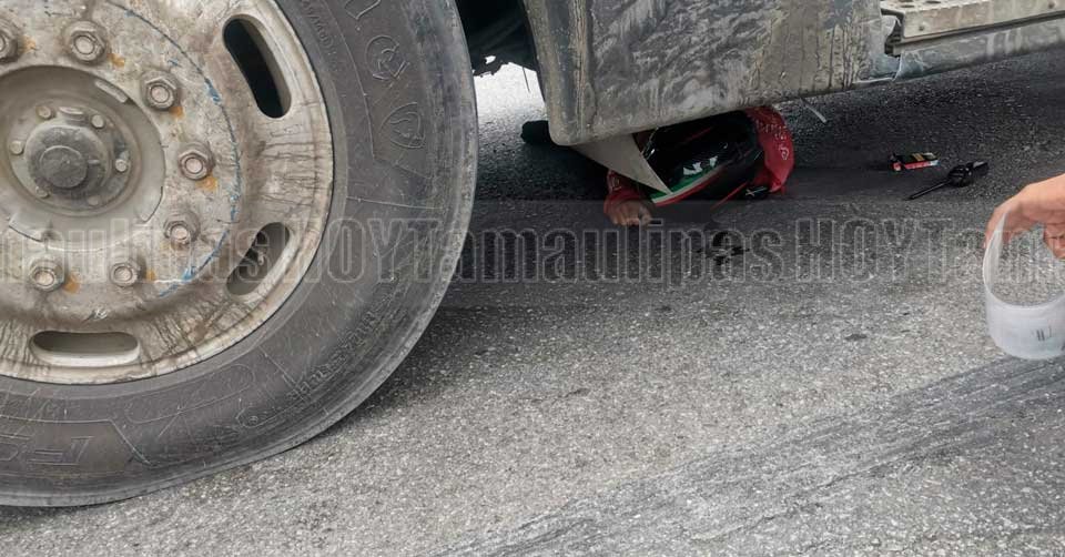 Altamira, Tamaulipas.-La tragedia se hizo presente la tarde de este domingo en el municipio de Altamira, al perder la vida un motociclista que se desempeñaba como repartidor a través de la aplicación de Didi Food al ser arrollado por un tráiler, quedando su cuerpo bajo la unidad de carga.