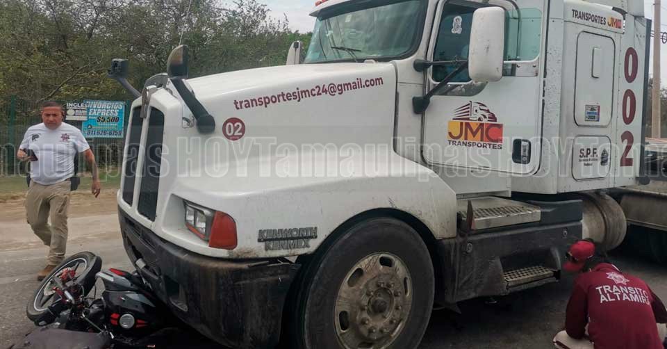Elementos de tránsito se movilizaron para tomar conocimiento del percance, verificando que el tráiler color blanco propiedad de la empresa "Transportes JMC" se desplazaba de Altamira hacia Tampico, y al llegar al semáforo en la mencionada intersección impactó a la moto en la que viajaba el ahora finado y una mujer que resultó lesionada.