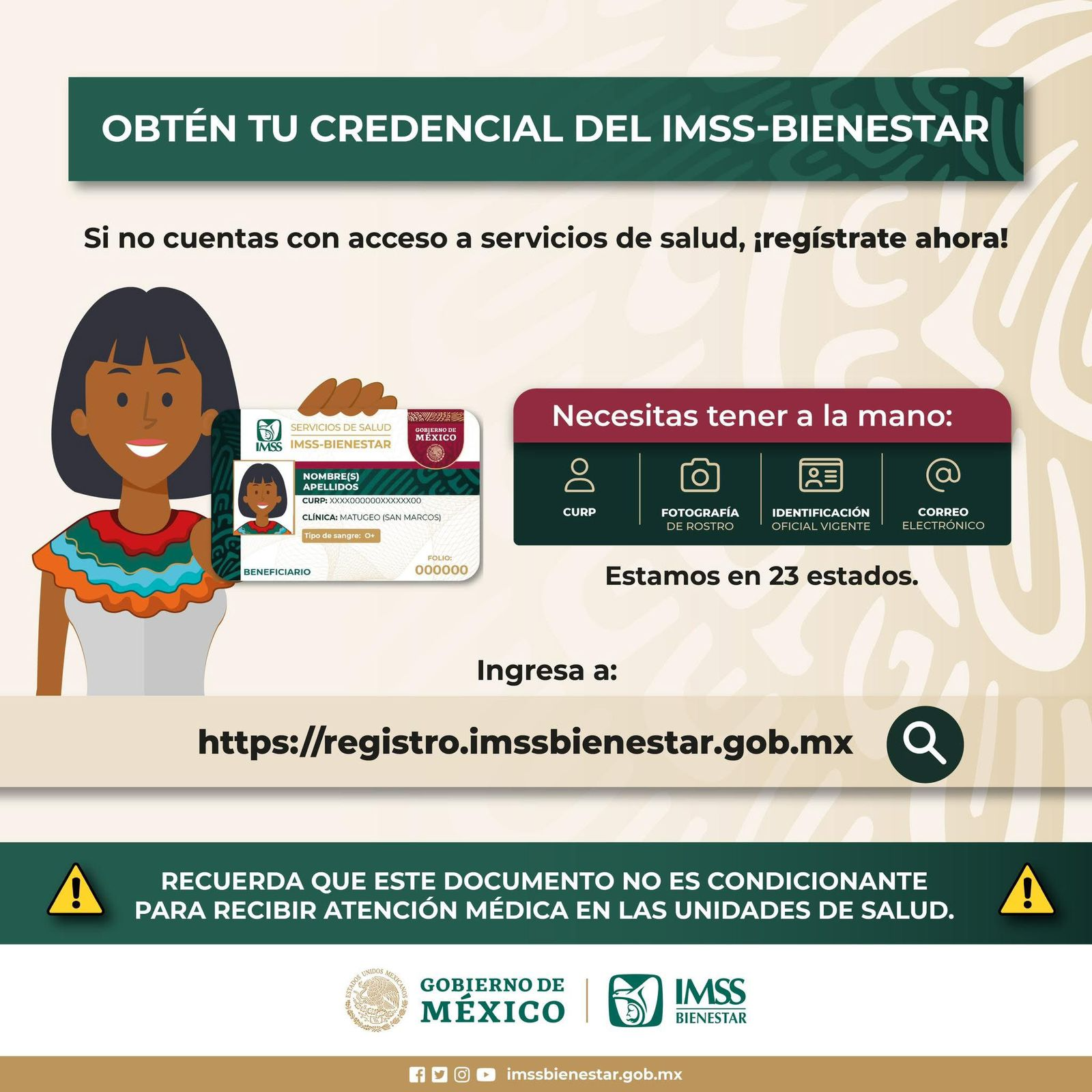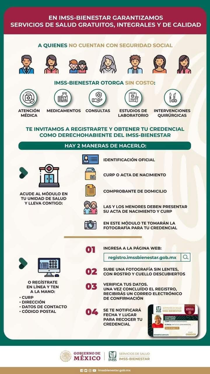 El proceso digital es la forma más rápida de obtener tu credencial y empadronarte, estableció Rodríguez Avendaño, puedes acceder al portal Registro IMSS-Bienestar siguiendo unos simples pasos, para que puedas recibir consultas de medicina general, pediatría, medicina interna y ginecología.