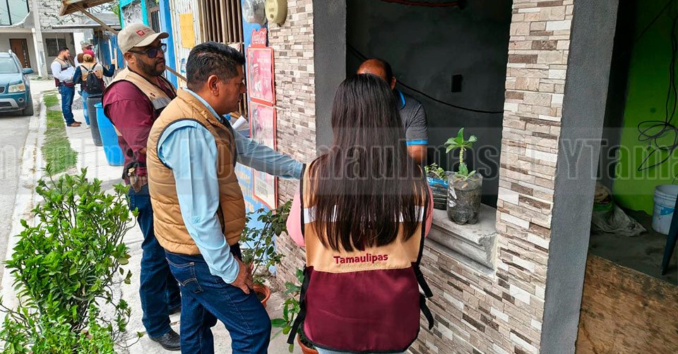 Reynosa, Tamaulipas. - Un amplio operativo de verificación del programa de entrega de despensas se realiza en Reynosa casa por casa en colonias del suroriente, entre ellas Villa Esmeralda, Praderas de Élite, Fraccionamiento Las Palmas, Villas de la Joya y Balcones de Alcalá.
