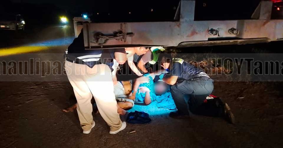 Joven motociclista queda grave al chocar contra plataforma de tráiler en Altamira