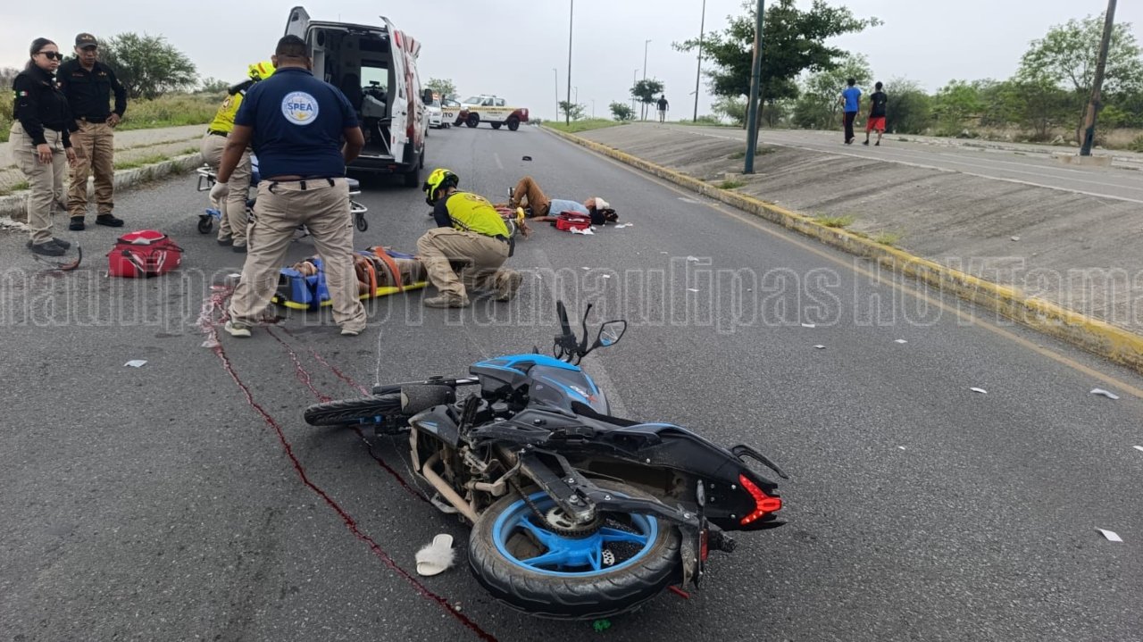 Ciudad Victoria, Tamaulipas.– Un fuerte accidente vial registrado la mañana de este sábado en el sector oriente de Ciudad Victoria dejó como saldo tres personas lesionadas, una de ellas de gravedad, luego de que una motocicleta y una bicicleta colisionaron de frente sobre la avenida Carlos Adrián Avilés, a la altura de la colonia Moderna.