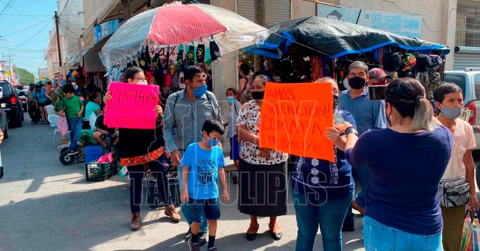 Protestan en el centro de Ciudad Victoria por peste de aguas negras