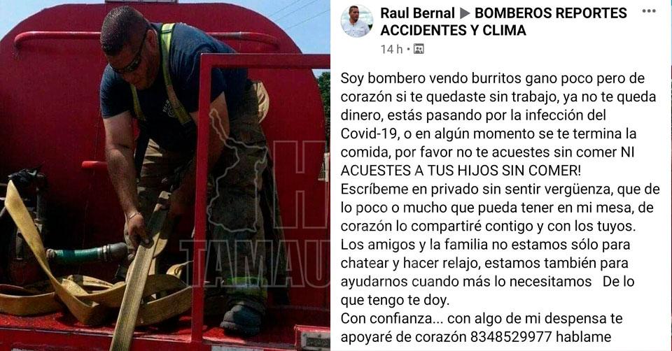 Por la pandemia del Covid-19; Bombero de Victoria ofrece comida a necesitados