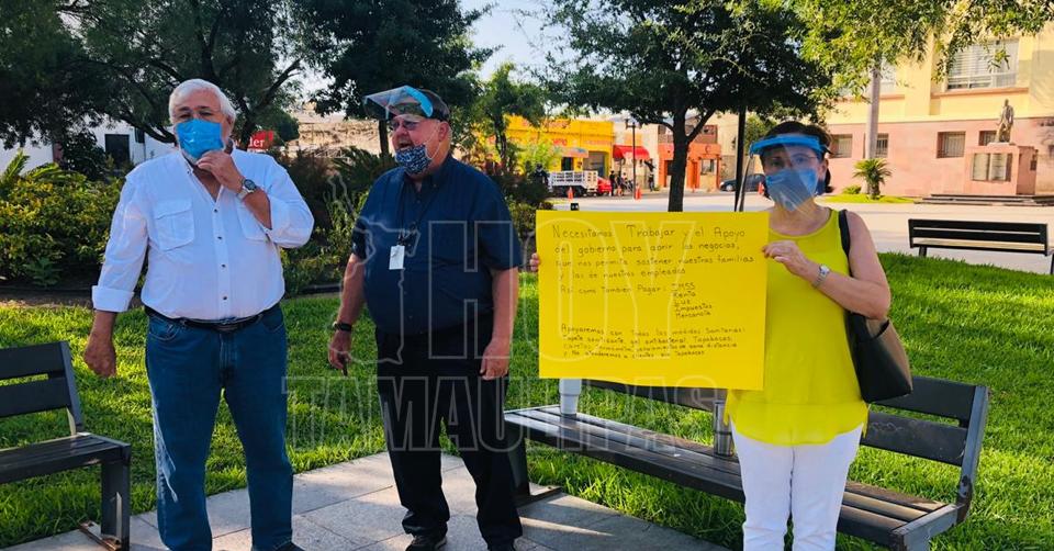 En Ciudad Victoria: Protestan comerciantes frente a Gobierno de Tamaulipas