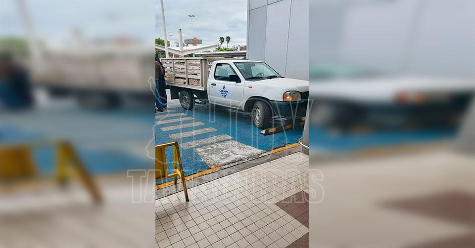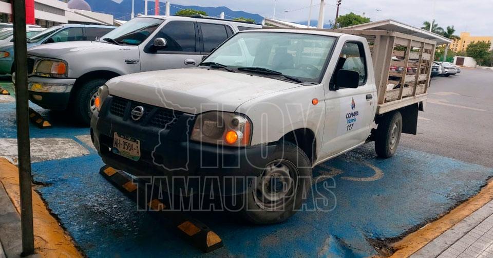 “Voy al baño”, empleado de Comapa Victoria al estacionarse en sitio para discapacitados