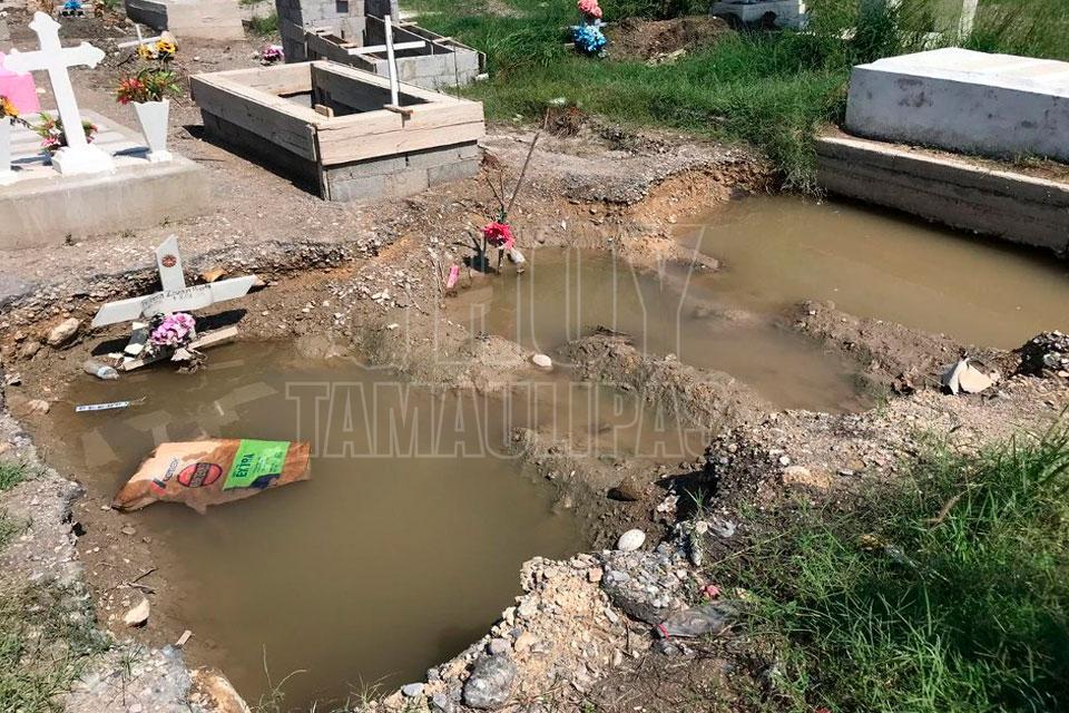 Se inundan tumbas en el Panteón De la Cruz en Ciudad Victoria